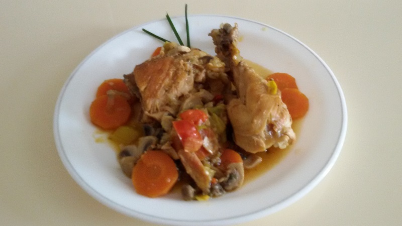 Mientras lavaremos y cortaremos a rodajitas la cebolla, el pimiento, el puerro, los champiñones y el ajo. Una vez este el pollo dorado, iremos agregándole estas verduras.